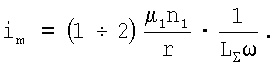 Полагая, что потери мощности на сопротивлении обмоток не должны превышать потерь на Rэкв, т.е. im 100 A, и сопоставляя (12) и (13), получаем одно соотношение