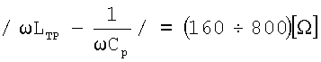 Частота колебаний контура соответствует промышленной, т.е. 314 рад/с (50 Гц) или 2512 рад/с (400 Гц) или иной при необходимости.