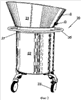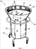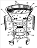 7. Устройство (20) по любому из пп.1-6, отличающееся тем, что опорная тележка (22) выполнена предпочтительно из нержавеющей стали и образована, по существу, верхним кольцеобразным элементом (27) и нижней пластиной (28) в форме диска, которые жестко соединены вместе с помощью вертикальных стоек (29), а к верхнему кольцеобразному элементу (27) прикреплена круглая ручка (35), предназначенная для облегчения перемещения тележки (22) вручную, для подвешивания кухонных принадлежностей, обычно используемых при приготовлении пищи, а также используемая в качестве опоры для подносов (60), имеющих форму лепестков, причем форма подносов обеспечивает их установку так, что их внутренние криволинейные кромки (61) расположены между выступающим ободом (56) указанного верхнего кольцеобразного элемента (27) тележки (22) и верхней поверхностью круглой ручки (35).