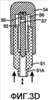 Фиг.3D – боковая вертикальная проекция, соответствующая фиг.3С; дозирующая насадка перемещается по отношению к первой части устройства, в результате чего происходит проникновение через вторую перегородку.