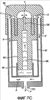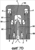 Фиг.7D – боковая вертикальная проекция, соответствующая фиг.7В; показано, что текучая среда течет между первой и второй частями устройства, когда первая часть устройства введена во вторую часть устройства.