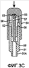 Фиг.3С – боковая вертикальная проекция, соответствующая фиг.3В; первая часть устройства вводится во вторую часть устройства, проникая через перегородку, закрывающую камеру обрабатывающего раствора во второй части устройства.