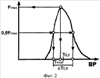 где Tmod – значение времени СМР, наиболее вероятное в проведенной серии стимуляции; Т0,5 – диапазон времени реакций, соответствующий уровню вероятности, равному половине максимальной – 0,5Рmах; Рmах – максимальная вероятность, соответствующая пределам модального класса; Т0,5 – значение времени реакции, соответствующее середине диапазона Т0,5. Указанные величины отображены на графике плотности вероятности времени СМР, приведенном на фиг.2.