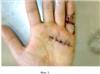 После иссечения перерожденного тяжа II порядка на пальце всегда возникает необходимость выполнения местной кожной пластики, так как стойкая сгибательная контрактура пальца при этой форме бывает смешанной, т.е. десмо-дерматогенной, и только местная кожная пластика позволяет устранить дерматогенный компонент смешанной контрактуры.
