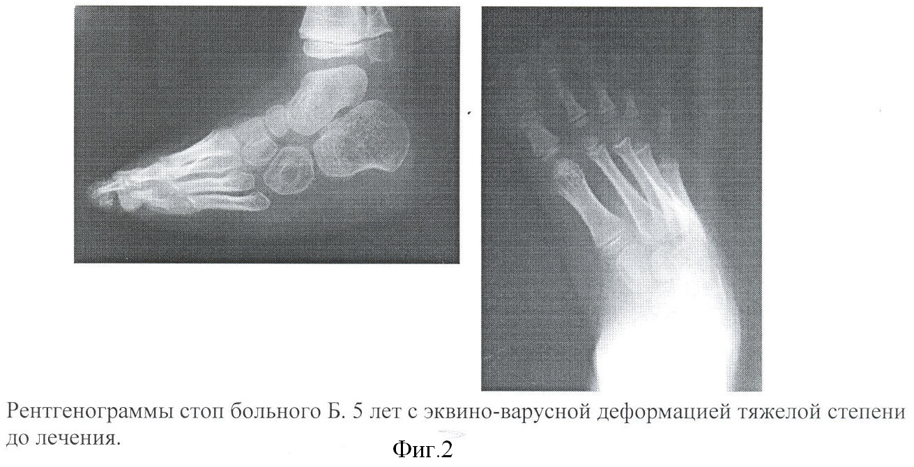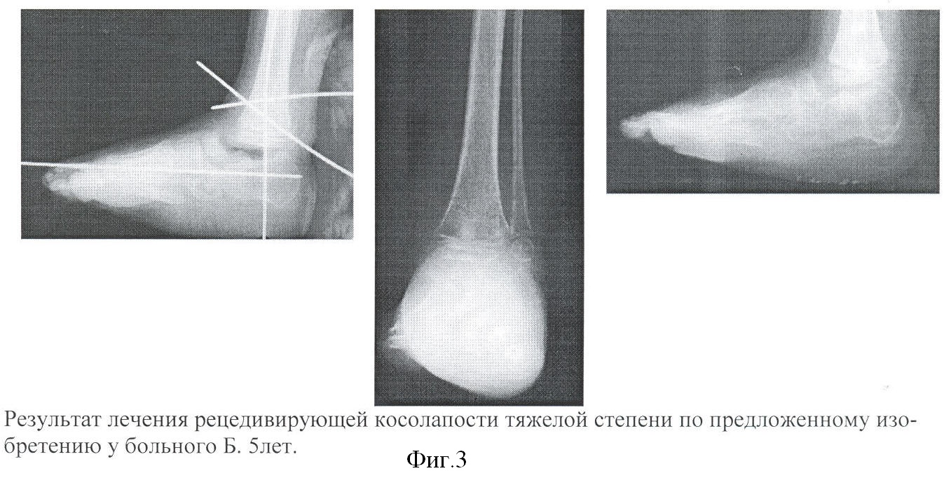 Задачей изобретения является создание способа лечения рецидивирующей косолапости тяжелой степени у детей раннего возраста, который используется при устранении эквино-варусной деформации стопы с выраженной наружной ротацией малоберцовой кости.