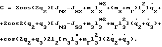 cos2(q2 + q3) и cos(2q2 +q3). На выходе блока 56 умножения формируется сигнал: