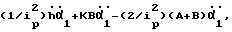 Первый положительный вход сумматора 63 /со стороны блока 62 умножения/ имеет коэффициент усиления 1/ip2, а его второй /со стороны датчика 83 ускорения/ и третий /со стороны блока 84 умножения/ положительные входы – коэффициенты усиления Кв и 2/ip2, соответственно. В результате на выходе этого сумматора формируется сигнал: