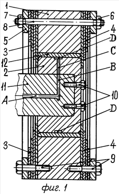 Техническое решение поясняется чертежами. На фиг. 1 представлен поперечный разрез гасителя продольно-крутильных колебаний, а на фиг. 2 – вид гасителя с торца.
