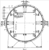 Печь вакуумная содержит полый корпус 1 преимущественно цилиндрической формы с торцевыми крышками 2 и 3. Крышка 2 (задняя) прикреплена к корпусу 1 стационарно, а крышка 3 (передняя) имеет возможность перемещения, то есть отводится от торца корпуса, в который осуществляется загрузка-выгрузка изделия (изделий).