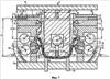 Штамп-прибор оснащают двумя индикаторами 7, 9 с горизонтальным осями на расстоянии “а” по вертикали вниз от рабочих поверхностей двух матриц 2, 11. Начало отсчета этих индикаторов устанавливают от вертикальной линии рабочего края соответствующей матрицы 2 и 11. Внутри пуансона 4 по его оси симметрии размещают третий индикатор 8 с вертикальной осью. Начало отсчета этого индикатора устанавливают от горизонтальной плоскости торца пуансона 4. Точность изготовления штампа-прибора повышенная.