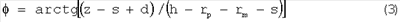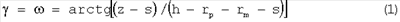 Если два края образца коснутся нижних точек радиусных закруглений матриц при различных ходах пуансона h, то по формуле (1) для каждого хода пуансона h рассчитывают разные исходные углы и .