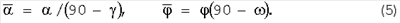 Окончательно два угла пружинения и двух полок образца толщиной s, шириной b и длиной L после изгиба по закругленным рабочим кромкам пуансона и матриц на углы, близкие к 90° и равные соответственно 90°- и 90°- , рассчитывают по формулам