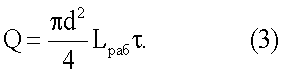 Умножив правую часть уравнения 2 на рабочую длину заборной емкости Lраб и на время , получим объемный расход: