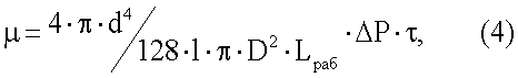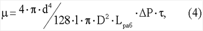 Подставив правую часть полученного выражения в уравнение 1, получим модифицированную формулу определения динамической вязкости, учитывающую все конструктивные особенности предлагаемого устройства: