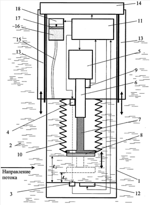 Датчик перемещения 9 может быть любого типа, например индуктивного, емкостного, резистивного, оптического и др.