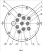 Электрод сравнения 13 установлен по оси корпуса в центре нижней крышки, а рабочие электроды 4-12 параллельно друг другу и электроду сравнения 13 по двум концентрическим окружностям на пропорциональном расстоянии от него при условии расположения электрода сравнения 13 и каждого рабочего электрода 4-12 друг против друга. В зависимости от решаемой задачи количество рабочих электродов 4-12 может быть увеличено, поэтому они могут быть установлены по нескольким (более двух) концентрическим окружностям.
