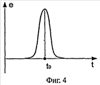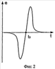 При низких скоростях движения объекта сигнал с катушки индуктивности становится малым, переход его через нуль нечетким, соответственно снижается точность определения положения объекта относительно основания. В этом случае предпочтительным является использование измерителя (например, датчика Холла) в качестве преобразователя магнитного поля. При этом, если ось чувствительности измерителя перпендикулярна направлению движения объекта, то эдс на выходе измерителя будет иметь вид, показанный на фиг.4. Моменту прохождения центра магнита напротив центра измерителя соответствует максимум эдс е (время t0). Поскольку такая форма сигнала не обеспечивает четкого определения времени t0 (положения объекта, движущегося относительно основания), то предпочтительным является такое расположение измерителя (датчика 5 Холла на фиг.3) в заданном месте основания, при котором его ось чувствительности параллельна направлению движения объекта. В этом случае сигнал с измерителя имеет вид, показанный на фиг.2, т.е. имеет место четкая фиксация времени t0 (более точное определение положения объекта).