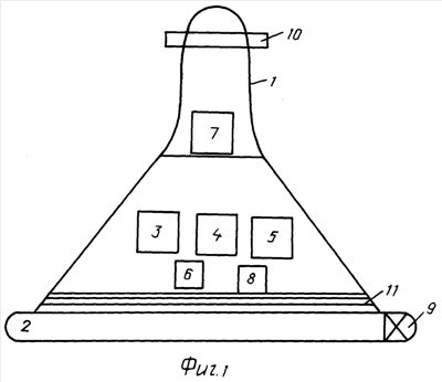 – контейнер выполнен колоколообразной формы, в верхней части которого размещено сенсорное кольцо с установленными на нем датчиками измерительной аппаратуры;