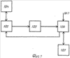 Фиг.7. Навигационно-управляющий модуль 7 состоит из приемоиндикатора 103, антенно-фидерного устройства 104 с антенной, установленной на сенсорном кольце 10, схемы 105 приема и обработки сигналов, контроллера 106, включающего интерфейсы RS232 – до 8 каналов, ЕРР/ЕСР – 1 канал, параллельную 8-ми разрядную шину – 12 каналов, линию управления питанием внешних устройств 5/12 В, до 0,5 А – до 8 линий, SPI до 3 каналов, 12S – до 2 каналов, CAN-канал, USB-1 канал, ультразвуковой канал – 1, оптоволоконный модем-1, радиомодем-1, FLASH-память до 4 Гбайт, часы реального времени, входные фильтры аналоговых каналов, микропроцессор, а также систему динамической стабилизации 107 зонда, содержащую блок датчиков рассогласований по продольному, поперечному и вертикальному перемещениям зонда при внешних воздействиях, гироазимутгоризонткомпас, преобразователь координат, следящие устройства.