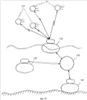 Фиг.10. Схема формирования навигационной базы, где показаны навигационные спутники 157, подводный объект 158, зонд 159.
