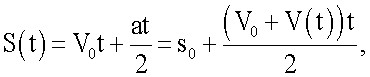 Перемещение устройства в конкретный момент определяют по формуле