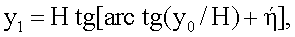 Так как плоскость палубы практически никогда не совпадает с плоскостью горизонта, то учитываются также влияние углов крена и дифферента . Дифферент не сказывается на значении у0, а крен на значении х0, ось Х направлена вдоль продольной оси подводного объекта, а ось Y направлена по траверзу. Исправленные путем учета крена и дифферента значения координат маяка можно записать следующим образом: x1=H tg[arc tg([0/H)+ ], где и – положительные значения при опускания носа и правого борта.