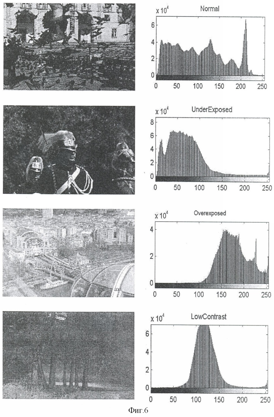1. Способ оценки качества изображения, основанный на разбиении матрицы изображения на блоки и последующем анализе гистограмм блоков, составляющих изображение, с целью выявления и классификации дефектов экспозиции исходного цифрового изображения, включающий в себя выполнение следующих операций: а) разбивают изображение на блоки; б) рассчитывают яркостную гистограмму каждого блока; в) проводят анализ яркостной гистограммы каждого блока; г) присваивают классификационный признак каждому блоку; д) присваивают классификационный признак изображению в целом.