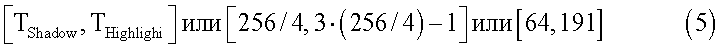 где TShadow и THighlight – пороговые значения для темных и светлых тонов соответственно.