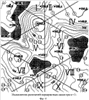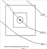 Если информации на обрезанном оригинале рельефа оказывается недостаточно для определения направления ската, увеличивают размер стороны квадрата вдвое и повторяют указанные действия, пока не будет получено искомое направления ската или не будет исчерпан весь оригинал рельефа. Пример такой ситуации приведен на фиг.2, на котором видно, что для самого первого квадрата обрезанный оригинал рельефа содержит всего одну горизонталь, и по нему невозможно определить направление ската в данной точке. При удвоении длины стороны квадрата обрезанный оригинал рельефа содержит три горизонтали, и по ним можно определить направление ската в данной точке.