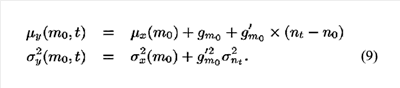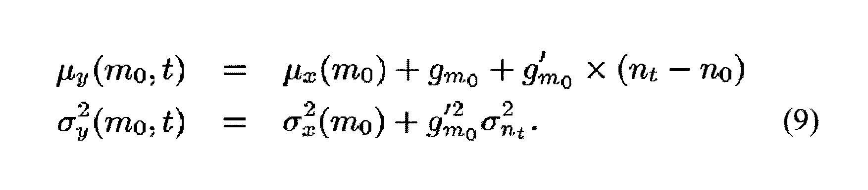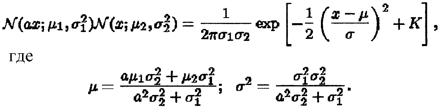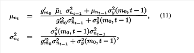 и было использовано допущение плавности изменения шума. Средние значения и дисперсии соответственно левых и правых частей отождествляют в уравнении 10 для получения формулы априорного изменения: