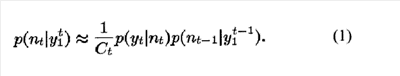 и т.д. Таким образом, этот процесс рекурсивно генерирует последовательность апостериорных распределений (при условии, что имеется p(yt|nt)