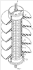 По окружности варисторных блоков таким образом, с помощью клиньев 13, к концевому захвату 3 прикреплено множество усиленных стекловолокном пластиковых стержней по обеим сторонам батареи варисторных блоков.