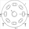 Показанное исполнение имеет восемь сквозных отверстий, хотя возможно также любое другое количество, например три или четыре сквозных отверстия 11.