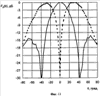 На фиг.1 приведена предлагаемая моноимпульсная антенна с видом со стороны волноводных излучателей. На фиг.2 показана моноимпульсная антенна с видом со стороны входа передающего канала. На фиг.3 приведена электрическая схема моноимпульсной антенны. На фиг.4 показано расположение волноводных каналов в одном из полукорпусов первого Е-плоскостного волноводного узла. На фиг.5 показано расположение волноводных каналов в другом полукорпусе первого Е-плоскостного волноводного узла. На фиг.6 показано расположение волноводных каналов в одном из полукорпусов второго Е-плоскостного волноводного узла. На фиг.7 показано расположение волноводных каналов в другом полукорпусе второго Е-плоскостного волноводного узла. На фиг.8 приведены волноводные каналы в одном из полукорпусов третьего Е-плоскостного волноводного узла. На фиг.9 приведены волноводные каналы в другом полукорпусе третьего Е-плоскостного волноводного узла. На фиг.10 показана единая часть корпуса, объединяющая в себе соприкасающиеся полукорпуса первого и второго Е-плоскостных волноводных узлов. На фиг.11 представлены экспериментальные суммарная и разностная диаграммы направленности одного из изготовленных образцов моноимпульсной антенны.