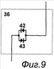 Ограничительный элемент 36, как показано на фиг.8, содержит двуханодный стабилитрон 41, первый анод которого является первым входом ограничительного элемента 36, второй анод двуханоного стабилитрона 41 соединен с анодом первого 42 и катодом второго 43 диодов, катод и анод которых объединены и являются вторым входом ограничительного элемента 36.