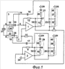 Ограничительный элемент 36, как показано на фиг.10, содержит первый 42, второй 43, третий 44 и четвертый 45 диоды, первый вход ограничительного элемента соединен с катодом первого 42 и анодом второго 43 диодов, второй вход ограничительного элемента соединен с катодом третьего 44 и анодом четвертого 45 диодов, аноды первого 42 и третьего 44 диодов соединены с шиной 46 отрицательного питания устройства, шина 47 положительного питания которого соединена с катодами второго 43 и четвертого 45 диодов.