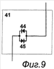 Ограничительный элемент 36, как показано на фиг.8, содержит двуханодный стабилитрон 41, первый анод которого является первым входом ограничительного элемента 36, второй анод двуханоного стабилитрона 41 соединен с анодом первого 42 и катодом второго 43 диодов, катод и анод которых объединены и являются вторым входом ограничительного элемента 36.