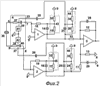 Использование в устройствах показанных на фиг.1 и 3 конденсаторов 31 и 33 позволяет уменьшить коэффициент передачи цепей обратной связи по постоянному току на частотах ниже нижней рабочей частоты, что снижает низкочастотный шум и смещение нулевого уровня на выходе операционных усилителей 1 и 2. При этом постоянные времени RC цепочек C31R30, C33R32, где индекс соответствует номеру элемента на чертеже, удовлетворяют условию (1.1).