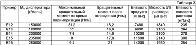 Примеры Е12-Е16 (все содержат 50 мас.% катионного мономера в полимере А) 360 г диспергатора (поли(хлорида триметиламмонийпропилакриламида)) добавляли к раствору 190 г акриламида (50%), 316 г воды, 2 г Versenex 80 (5%), 119 г хлорида триметиламмонийметилакрилата (80%). Смесь помещали в 2-литровую колбу, снабженную KPG-мешалкой, и нагревали до начальной температуры 35°С. После удаления кислорода путем продувания азотом добавляли 50 частей на млн дисульфита натрия, 50 частей на млн пероксидисульфата натрия и 5 частей на млн трет-бутилгидропероксида. После достижения температурного максимума добавляли инициатор (400 частей на млн ABAH), и полученной смеси позволяли взаимодействовать в течение еще 15 минут при этой температуре. Затем добавляли 5 г лимонной кислоты. Конечный продукт охлаждали и фасовали. В таблице 3, приведенной ниже, показаны результаты теста для диспергаторов с изменяющейся средней молекулярной массой (MW). Содержание остаточных мономеров в E14 составляет 620 частей на млн акриламида. Пример E17 (60 мас.% содержание катионного мономера в полимере A) 450 г диспергатора (поли(хлорида триметиламмонийпропилакриламида)) добавляли к раствору 144 г акриламида (50%), 245 г воды, 2 г Versenex 80 (5%), 135 г хлорида триметиламмонийметилакрилата (80%). Смесь помещали в 2-литровую колбу, снабженную KPG-мешалкой, и нагревали до начальной температуры 35°C. После удаления кислорода путем продувания азотом добавляли 50 частей на млн дисульфита натрия, 50 частей на млн пероксидисульфата натрия и 5 частей на млн трет-бутилгидропероксида. После достижения температурного максимума добавляли инициатор (400 частей на млн ABAH), и полученной смеси позволяли взаимодействовать в течение еще 15 минут при этой температуре. Затем добавляли 5 г лимонной кислоты. Конечный продукт охлаждали и фасовали. В таблице 4, приведенной ниже, показан результат теста.