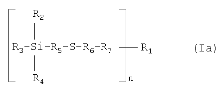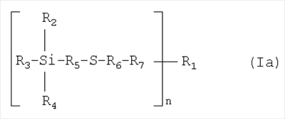 1. Композиция для изготовления изделий, включающая a) натуральный или синтетический эластомер, подверженный окислительному, термическому, динамическому, вызванному светом и/или вызванному озоном разложению, b) белый упрочняющий наполнитель, и c) в качестве связывающего агента по меньшей мере одно соединение формулы I