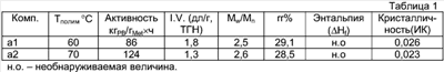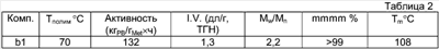 При конкретном осуществлении композиция полимеров 1-бутена по настоящему изобретению может быть получена в одну стадию при использовании одного или нескольких реакторов r и смеси двух совместимых катализаторных систем, одна из которых производит атактический компонент а), а вторая система производит полимер на основе 1-бутена компонента b). Каталитическая система на основе одноцентрового катализатора включает главным образом органическое соединение переходного металла, такое как металлоценовое соединение, и сокатализатор, обычно алюмоксаны или соединения бора. Когда оба компонента, а) и b), композиции согласно настоящему изобретению получают с использованием системы на основе одноцентрового катализатора, можно использовать два органических соединения переходного металла и один сокатализатор, способный активировать оба органических соединения переходного металла. В этом случае одно органическое соединение переходного металла производит компонент а), а второе органическое соединение переходного металла производит компонент b), и используется один и тот же сокатализатор. Например, соединение переходного металла, описанное в US 6288192, может быть использовано вместе с металлоценовым соединением, описанным в ЕР 03101304.8, причем оба активируются алюмоксанами или соединениями бора. Таким образом, следующей целью настоящего изобретения является способ получения композиции поли(1-бутена), описанной выше, включающий стадии получения: а) от 5 мас.% до 95 мас.% полимера на основе 1-бутена, выбранного из атактического гомополимера 1-бутена или атактического сополимера 1-бутена, содержащего до 50 мол.% одного или нескольких альфа-олефинов, выбранных из этилена, пропилена и альфа-олефинов формулы CH2=CHZ, в которой Z представляет С3-С10-алкильную группу, имеющего характеристики, описанные выше, путем приведения в контакт одного или нескольких мономеров в условиях полимеризации в присутствии катализаторной системы, содержащей по меньшей мере одно органическое соединение переходного металла; и b) от 5 мас.% до 95 мас.% изотактического полимера на основе 1-бутена, выбранного из изотактического гомополимера 1-бутена, изотактического сополимера 1-бутена, содержащего до 5 мол.% производных от этилена элементарных звеньев, изотактического сополимера 1-бутена, содержащего до 50 мол.% производных от пропилена элементарных звеньев, или изотактического сополимера 1-бутена и одного или нескольких альфа-олефинов формулы CH2=CHZ, в которой Z представляет С3-С10– алкильную группу, содержащего до 20 мол.% производных от указанных альфа-олефинов элементарных звеньев, имеющего характеристики, описанные выше, путем приведения в контакт одного или нескольких мономеров в условиях полимеризации в присутствии катализаторной системы, содержащей по меньшей мере одно органическое соединение переходного металла; отличающийся тем, что компоненты а) и b) получают одновременно в одном и том же реакторе. Предпочтительно органическими соединениями переходных металлов, используемыми на стадиях а) и b), являются металлоценовые соединения. Для цели настоящего изобретения органическими соединениями переходных металлов являются соединения, способные дать полимеры, имеющие узкое распределение молекулярного веса (Mw/Mn), т.е. распределение молекулярного веса ниже 5; предпочтительн