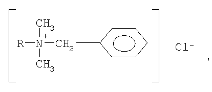 Изобретение относится к химической промышленности, в частности к производству лакокрасочных материалов для противокоррозионной защиты внутренней поверхности трубопроводов и стальных резервуаров, предназначенных для длительного хранения нефтепродуктов, в том числе моторных топлив (бензинов, авиакеросинов и дизельного топлива), и подверженных электрохимической и микробиологической коррозии, в особенности под воздействием сульфатвосстанавливающих бактерий (СВБ). Известен бактерицидный состав для покрытий, включающий органорастворимую краску или лак и биоцидный компонент – производные полигексаметиленгуанидин гидрохлорида [патент RU 2181737, МПК С09D 5/14, опубл. 2002 г.]. Указанный лакокрасочный состав предназначен для защиты от атмосферной коррозии строительных конструкций и поверхностей внутри помещений. Известна также эпоксидная композиция для покрытий, включающая органорастворимую эпоксидную эмаль и биоцидный компонент – полигексаметиленгуанидина гидрохлорид (ПГМГ) [Патент RU 2180907, МПК С09D 163/02, опубл. 2002 г.]. Используемые в указанных композициях биодобавки не полностью подавляют рост СВБ, что, в известной мере, ограничивает применение производных ПГМГ в качестве бактерицидного компонента лакокрасочных топливостойких покрытий по отношению к СВБ в среде нефтепродуктов. Наиболее близким к предлагаемому техническому решению является биоцидный эпоксидный состав для покрытий, содержащий эпоксидную эмаль ТАНЭП-622 и биоцидный компонент – полигексаметиленгуанидина гидрохлорид, взятый в виде смеси с добавкой фунгицидного действия (метацид) – гексагидро-1,3,5-три-(гидроксиэтил)-триазин [Патент RU 2282649, МПК С09D 5/14, опубл. 2006 г.]. При этом покрытия, создаваемые на поверхностях, контактирующих с нефтепродуктами, устойчивы к воздействию коррозионно-агрессивных углеводородокисляющих бактерий Pseudomonas aeruginosa Migyla, которые обычно развиваются в нефти в ассоциации с СВБ. Вместе с тем подавление наиболее коррозионно-агрессивных СВБ, как показали испытания данного покрытия, проявляется не в полной мере. Техническая задача при разработке предлагаемого биоцидного эпоксидного состава для покрытий заключается в создании композиции, обеспечивающей надежную защиту от коррозии, в том числе микробиологической, внутренней поверхности трубопроводов и стальных резервуаров, предназначенных для транспортировки и длительного хранения нефтепродуктов. В результате решения этой задачи создан биоцидный эпоксидный состав для покрытий, контактирующих с нефтепродуктами, при нанесении которого на защищаемые металлические поверхности отчетливо проявляются повышенные биоцидные свойства в отношении актиномицетов и грибов и в подавлении развития СВБ. Для достижения указанного технического результата известный биоцидный эпоксидный состав для покрытий, содержащий эпоксидную эмаль ТАНЭП-622 и биоцидный компонент – полигексаметиленгуанидин гидрохлорид, взятый в виде смеси с целевой добавкой, согласно предлагаемому техническому решению в качестве целевой добавки состав содержит бактерицид – алкилбензилдиметиламмоний хлорид, вводимый в массовом соотношении с полигексаметиленгуанидин гидрохлоридом, равном 1:1, при следующем соотношении компонентов, мас.ч.: