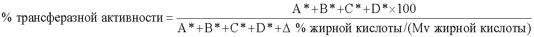 (i) данный фермент обладает ацилтрансферазной активностью, которую можно определить как активность переноса сложного эфира, в результате которого ацильная часть исходной сложноэфирной связи липидного донора ацильной группы переносится в один или несколько акцепторов ацильной группы, представляющих собой углевод, белок, белковую субъединицу или гидроксикислоту, с образованием нового сложного эфира, то есть сложного эфира углевода, сложного эфира белка, сложного эфира белковой субъединицы и/или сложного эфира гидроксикислоты; и