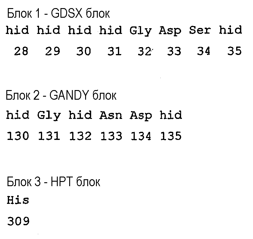 (ii) данный фермент содержит фрагмент GDSX в аминокислотной последовательности, где Х означает один или несколько нижеследующих аминокислотных остатков: L, A, V, I, F, Y, H, Q, T, N, М или S.