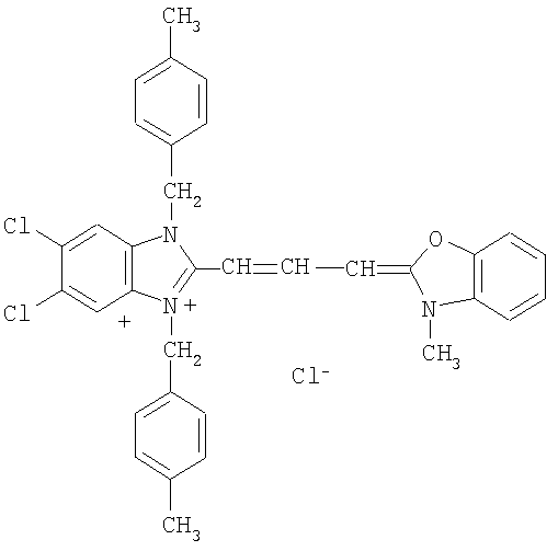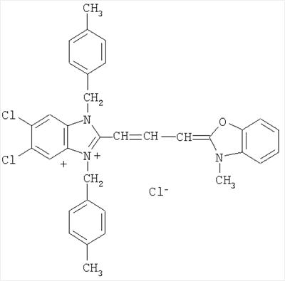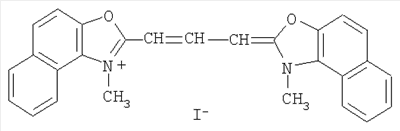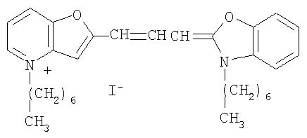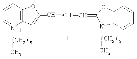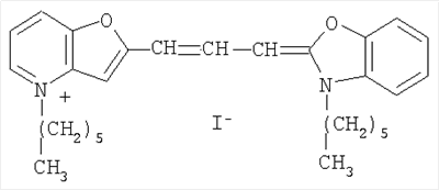 Название: бензоксазолий, 3-гексил-2-(3-(3-гексил-2(3H)-бензоксазолиден)-1-пропенил)-, иодид