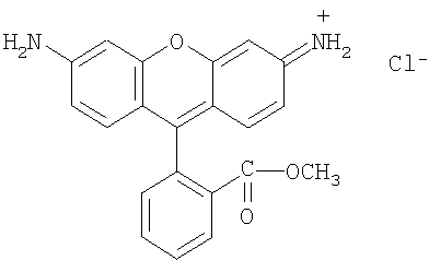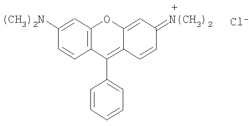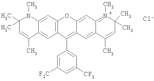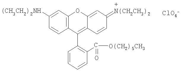 В соответствии с настоящим изобретением в качестве иллюстративного митохондриального индикатора может использоваться митохондриальный индикатор, такой как, но не ограничиваясь ими, A1372, D273, D288, D308, D378, D426, D632, D633, D22421, D23806, L6868, M7502, M7510, M7511, M7512, M7513, M7514, M22422, M22423, M22425, M22426, R302, R634, R648, R14060, R22420, S7563, T639, T668, T669 или T3168 (номера продуктов для соединений: все доступны в Molecular Probes); более предпочтительно M7514, M7510, M7511, M7512, M7513, M22425, M22426, T668, R302 или T3168; наиболее предпочтительно T668, R302, M7514 или T3168. Химические структуры описанных выше митохондриальных индикаторов, используемых в соответствии с настоящим изобретением, представлены ниже: