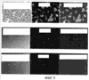Затем фиксированные клетки метили маркером кардиомиоцитов, антителами против -актинина саркомера мышей (поставляемого SIGMA), которые визуализировали с использованием антител козы против мыши, конъюгированных с зеленым флуоресцентным веществом (поставляемым Molecular Probes). Результаты представлены на фиг.5. На фиг.5 результаты для смеси клеток, полученной из целого сердца, представлены на верхних панелях, результаты для клеток, выделенных из области P5 по примеру 3, представлены на средних панелях и результаты для клеток, выделенных из области P6 по примеру 3, представлены на нижних панелях.