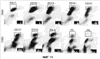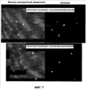 На фиг.2 представлены фотографии фазово-контрастных изображений (верхние панели) и флуоресцентные изображения (нижние панели) клеточной массы на протяжении одного цикла пульсации (т.е. цикла из фазы расслабления 1 – фазы сокращения – фазы расслабления 2). Эти результаты показывают, что все автономно пульсирующие кардиомиоциты строго были мечены M7512 по сравнению с другими типами клеток. Таким образом, флуоресценция на основе M7512 отчетливо наблюдалась в клеточной массе, состоящей из автономно пульсирующих кардиомиоцитов; в то время как флуоресценция на основе M7512 практически не наблюдалась в клетках из клеточной массы.
