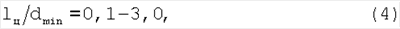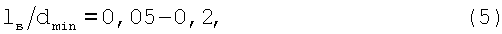 Если lв/dmin<0,05, то затрудняется изготовление сопел с необходимой точностью и практически не наблюдается влияния выходного цилиндрического участка на устойчивость течения из сопла к отрыву. Если lв/dmin>0,2, то имеет место заметное снижение радиальной составляющей скорости, величины диаметра dэф и уменьшение эффекта умягчения струи.