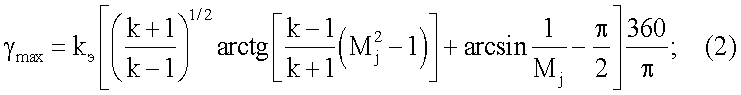 Величина mах определяется максимальным углом разворота потока дутья в сопле (при заданном давлении перед ним) и описывается зависимостью (2). При этом параметр kэ учитывает конструктивные особенности и качество изготовления проточной части сопла. Если > max, то имеет место отрыв потока от стенок диффузора в соплах, резко усиливается «разгар» последних и, как следствие, снижается стойкость фурмы и дестабилизируется режим плавки.